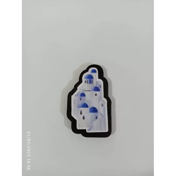 Ahşap Kabartmalı 3D Baskılı Santorini Adası Tasarım Magnet