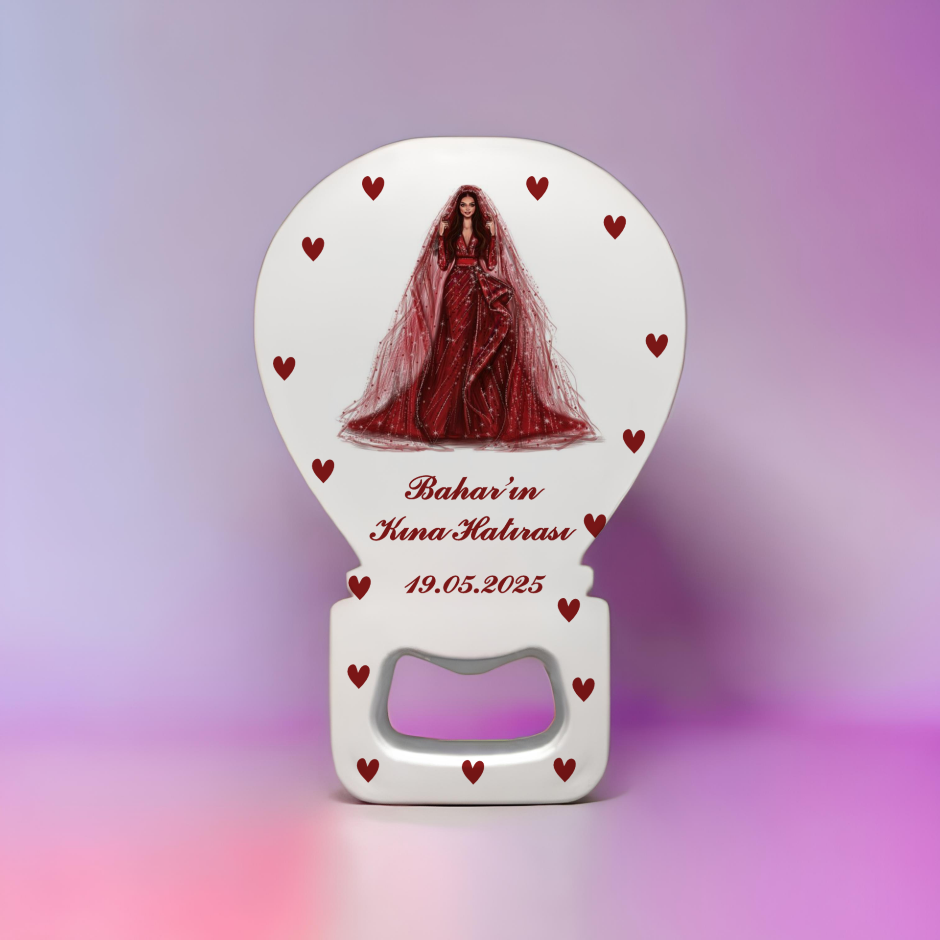 Kişiye özel kına açacak balon magnet kırmızı bindallı modeli, göz alıcı ve geleneksel tasarımıyla 15 adet olarak sunulmaktadır. Bu özel ürün, kına gecenizi kutlamak ve misafirlerinize anlam dolu bir anı sunmak için mükemmel bir tercihtir.
