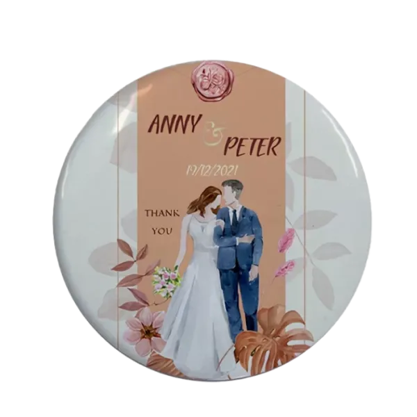 Kişiye Özel Nikah Hatırası Gelin Damat Tasarımlı Buton Açacak Magnet 58 mm 15 Adet