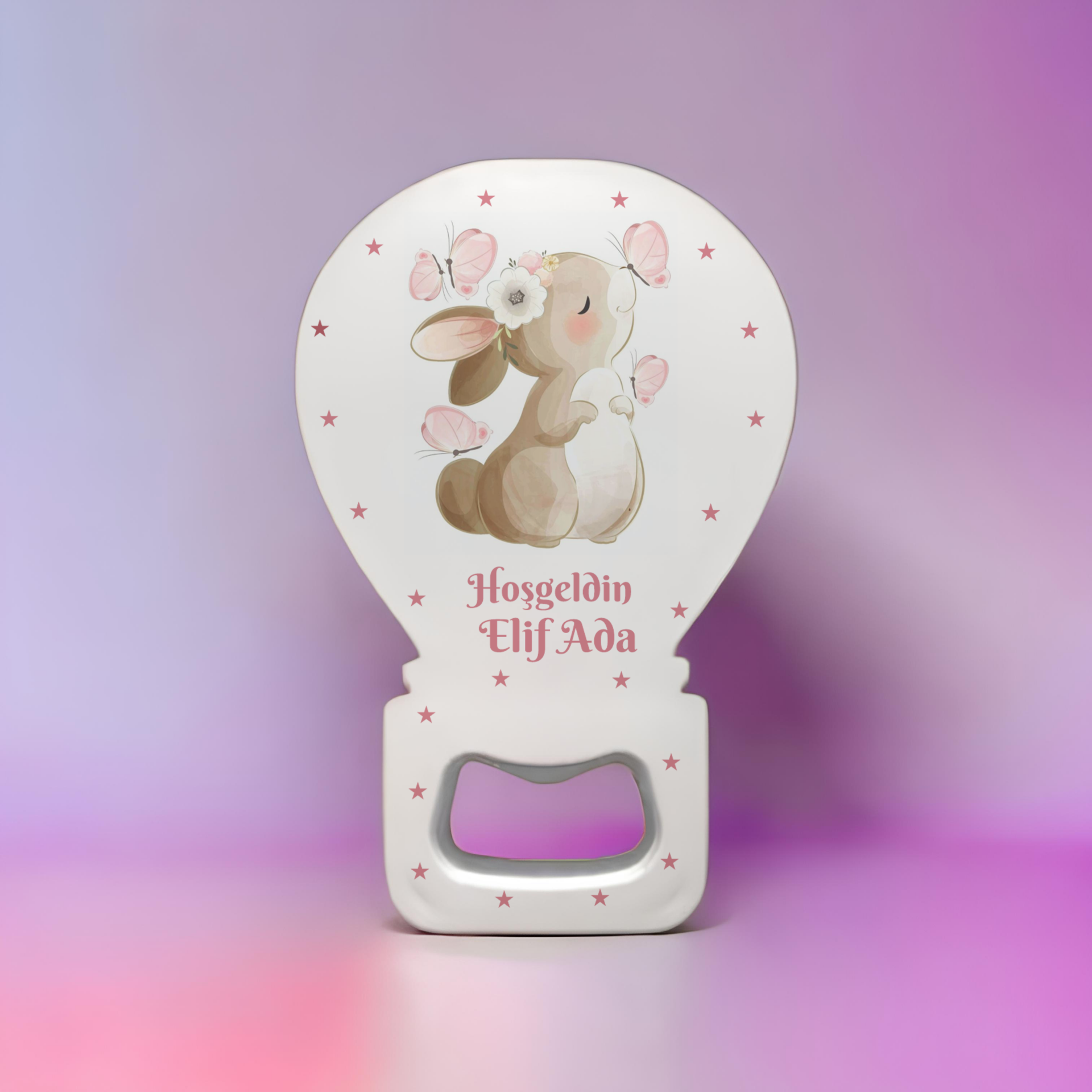 Kişiye özel yeni doğan açacak balon magnet tavşan modeli 2, sevimli ve eğlenceli tasarımıyla 15 adet olarak sunulmaktadır. Bu özel ürün, yeni doğan kutlamalarınızı daha anlamlı hale getirmek ve misafirlerinize unutulmaz bir hatıra sunmak için harika bir tercihtir.