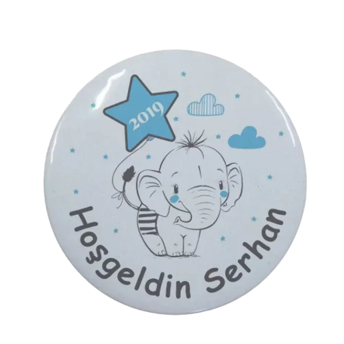Kişiye Özel Yeni Doğan Fil Tasarımlı Buton Açacak Magnet 58 mm 15 Adet