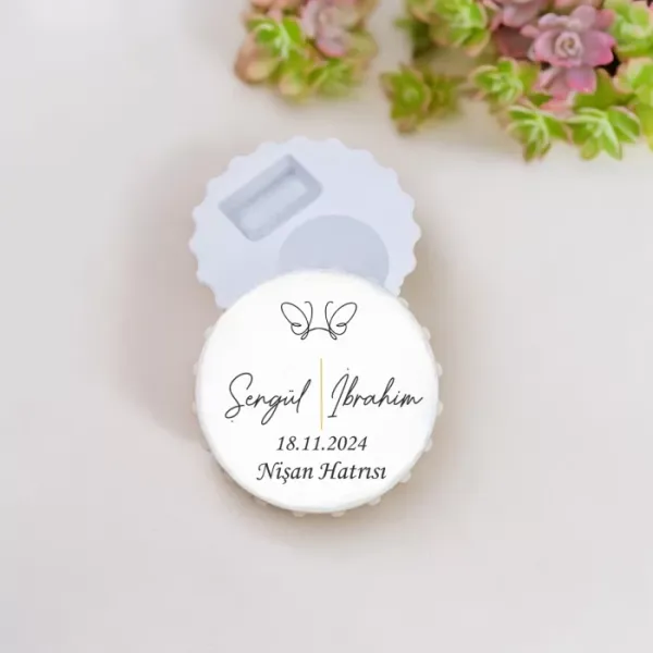 Nişan Hatırası Beyaz Tasarımlı Gazoz Kapak Açacak Magnet 15 Adet